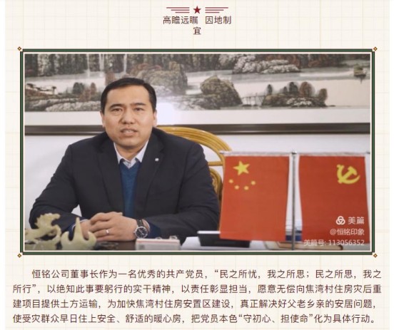 【用行動(dòng)詮釋責(zé)任 以責(zé)任彰顯擔(dān)當(dāng)】——恒銘金屬援建焦灣村災(zāi)后住房重建暨固溝保土生態(tài)建設(shè)工程啟動(dòng)