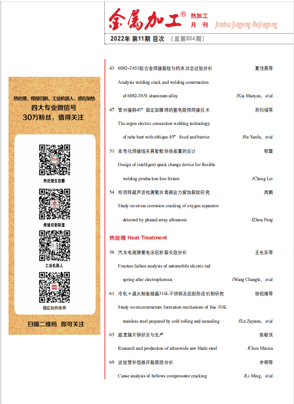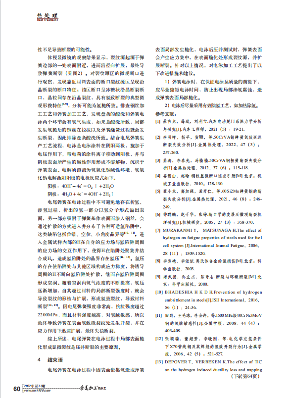 鞏義市恒銘金屬制品有限公司2022年在金屬加工‘熱加工’第11期雜志上發(fā)表了一篇名為“汽車電尾彈簧電泳后斷裂失效分析”的論文。